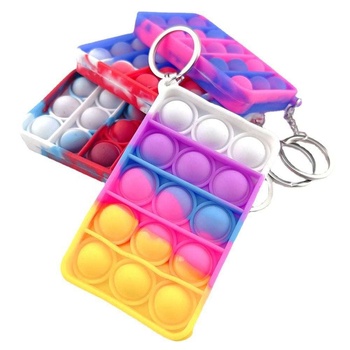 Mini llavero cuadrado de silicona para oficina, juguete de burbujas multicolor para escritorio