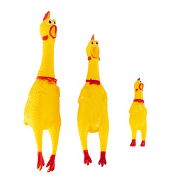 Venta al por mayor perro graznando pollo perro juguetes de goma amarilla Squeeze Squeaky And Screaming pollo para mascotas niños